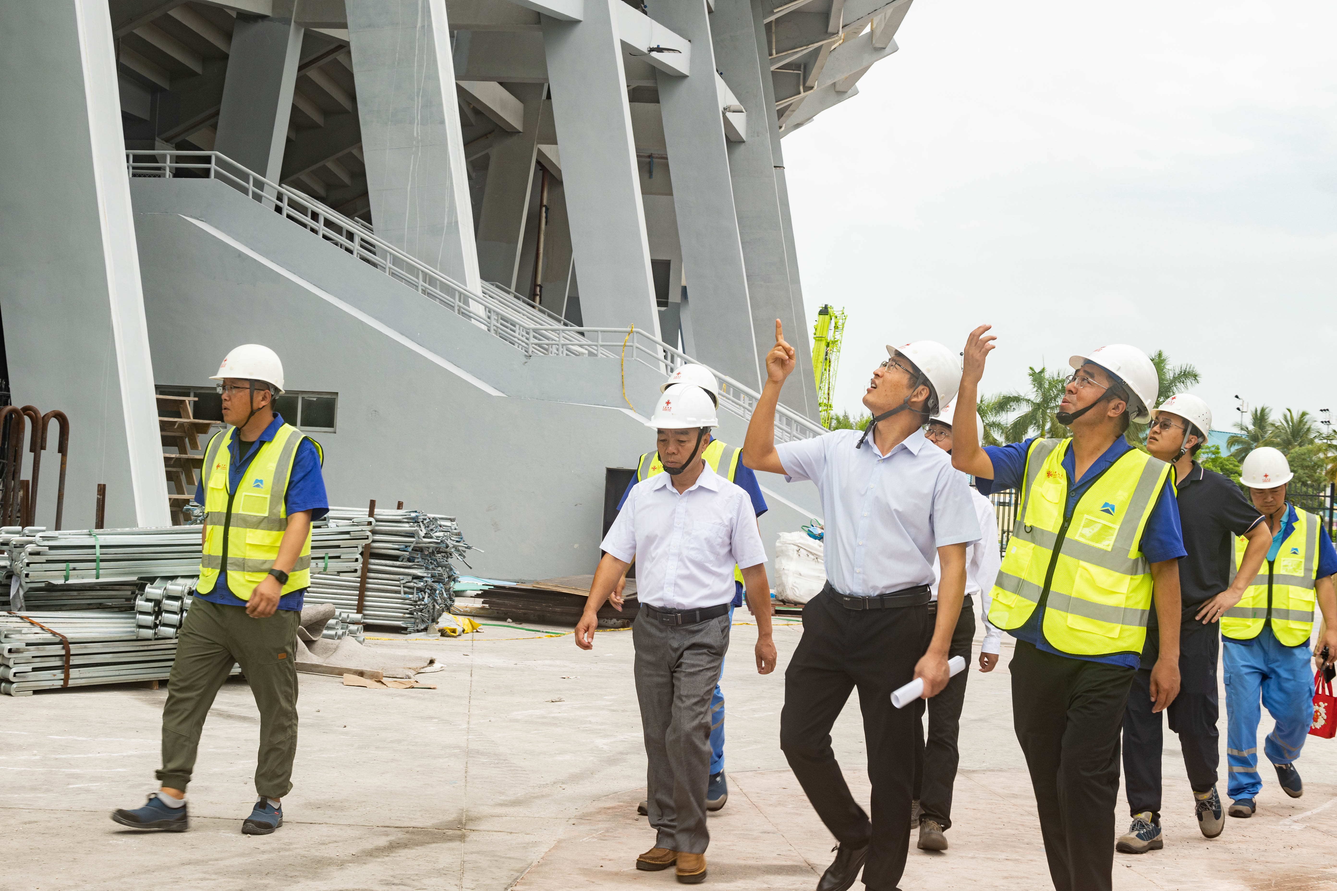2024年6月13日,中国驻巴哈马使馆经商工作负责人彭晶,深入我援巴国家体育场维修改造项目现场,走访慰问一线工人并开展项目安全检查,督促指导企业完善飓风应对预案、落实安全生产措施、做实工人权益保护,推动项目高质量实施。